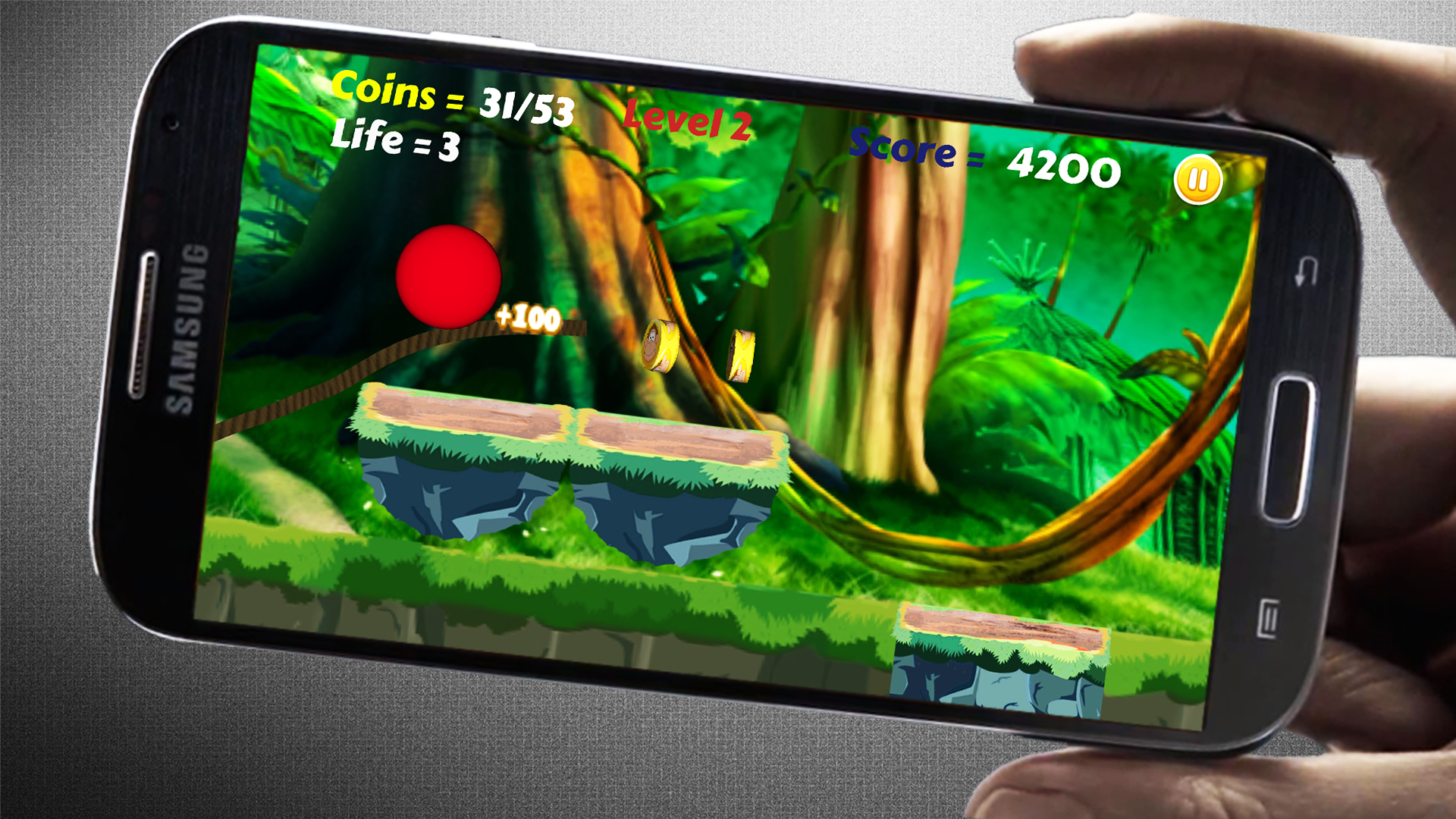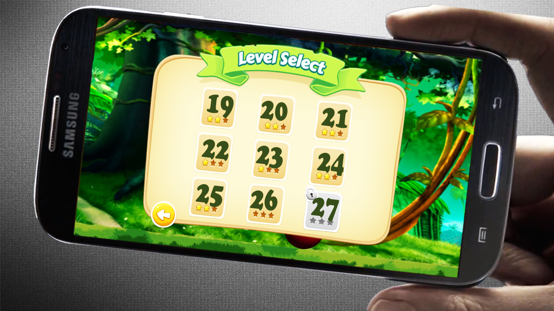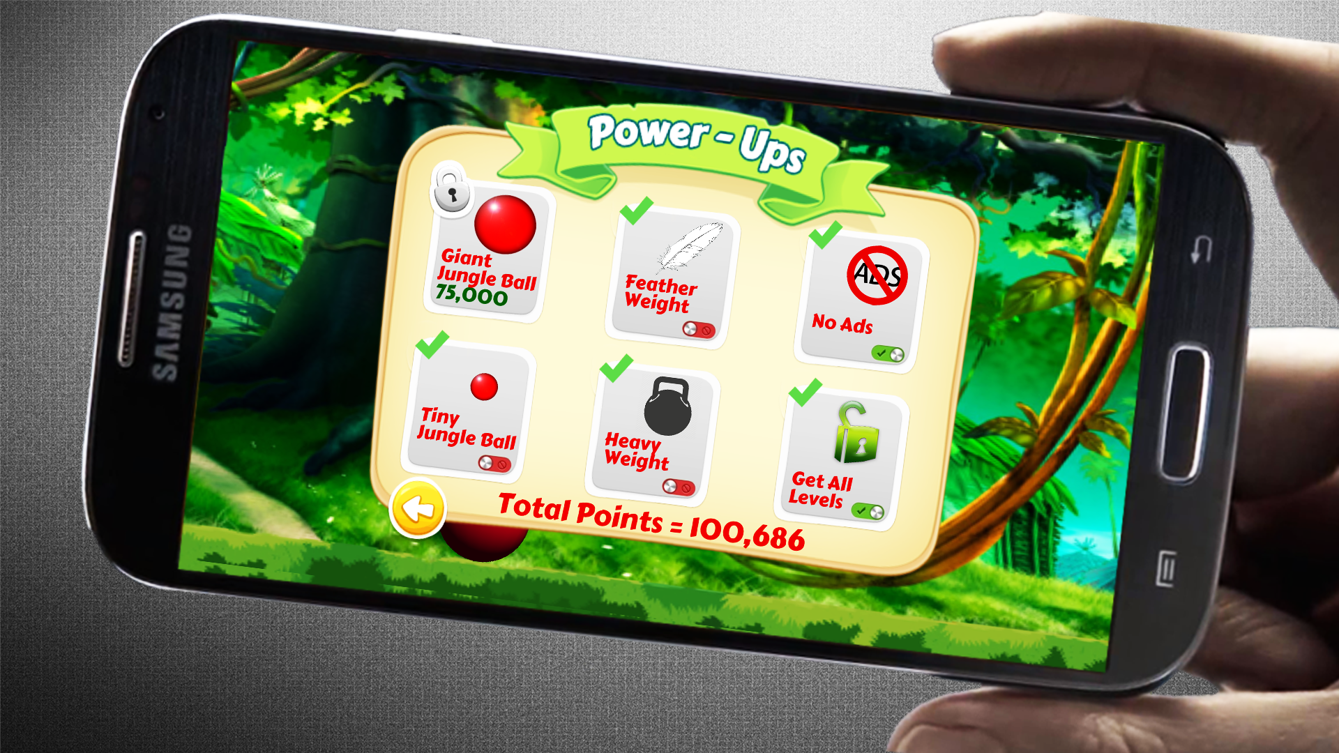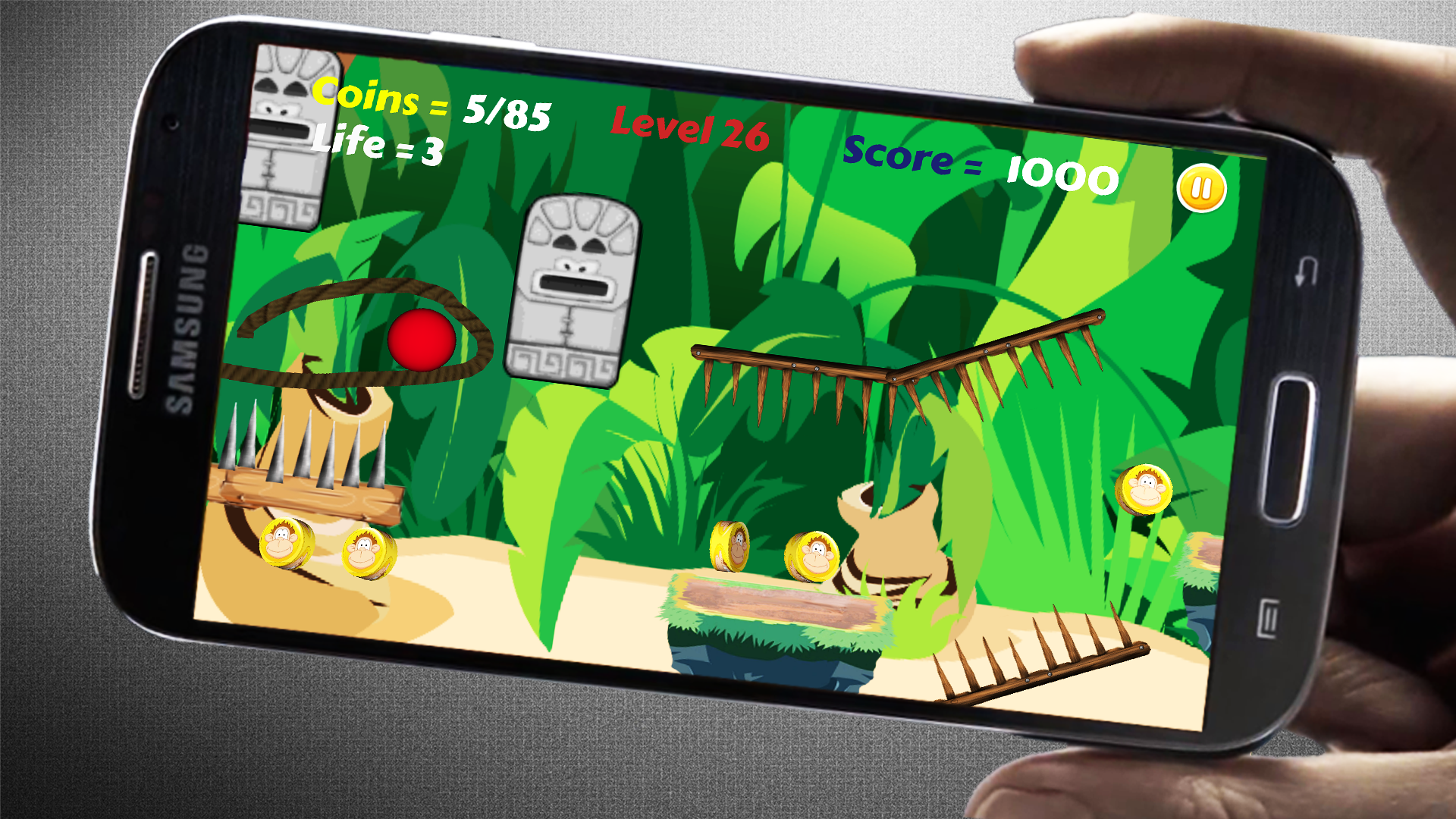 Mickey the Monkey has gotten his favorite little red ball taken away by the bullies of the jungle... the evil floating Tiki Heads! Help Mickey get his ball back! Play by tilting your device and drawing ropes "bridge lines" to navigate the ball to freedom. Simply draw lines with your finger, and use physics by tilting your device. You will be the one to determine the course the ball takes and the speed it travels through the jungle. Sound easy? Think again! Master this challenging and addictive concept of tilting and drawing while not perishing from the tricky obstacles such as floating tiki heads, protruding spikes, man-eating plants, as well as not allowing the ball to drop into an abyss. Collect every coin and gain access to all the power-ups such as the tiny jungle ball or feather weight jungle ball to enhance the jungle adventure. Can you help Mickey get his ball back?!