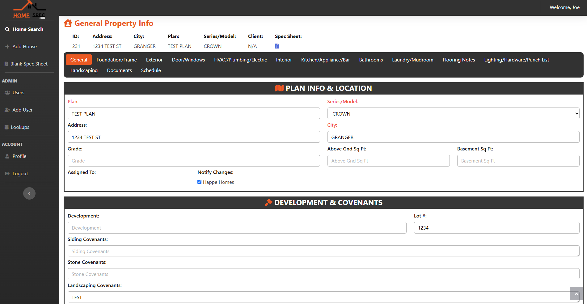 Home Spec PRO is a powerful software solution designed specifically for custom home builders. It helps manage and track every detail involved in the homebuilding process — from materials and floor plans to vendor selections, timelines, and client preferences. With Home Spec PRO, builders can stay organized, reduce costly mistakes, and ensure nothing falls through the cracks, making custom home projects smoother and more efficient from start to finish. Contact us today to schedule a free demo and get customized pricing for your team.